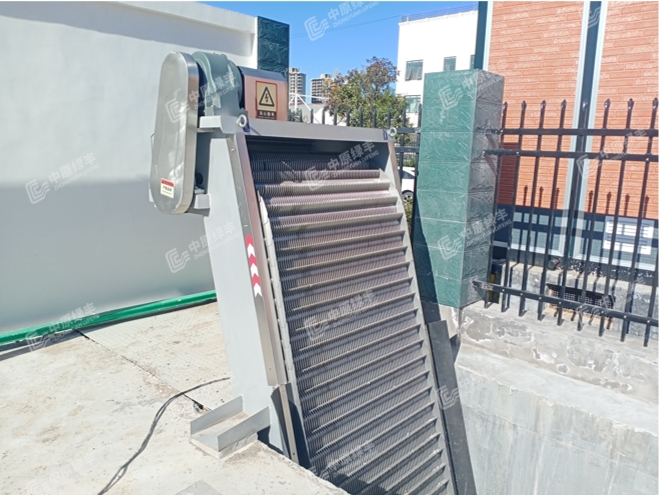 機(jī)械格柵能有效地分離固體物質(zhì),有效地降低水中懸浮物(SS)、化學(xué)耗氧量(COD),減輕后續(xù)工序的處理負(fù)荷。同時(shí)也應(yīng)用于工業(yè)生產(chǎn)中進(jìn)行固液分離和回收有用物質(zhì)。機(jī)械格柵過濾直徑為2~3mm,我公司在運(yùn)營過程中在機(jī)械格柵的基礎(chǔ)上研制了新型超微機(jī)械格柵,用于更小直徑(0.5mm)的過濾,進(jìn)一步降低水中懸浮物(SS)、化學(xué)耗氧量(COD),減輕后續(xù)工序的處理負(fù)荷。